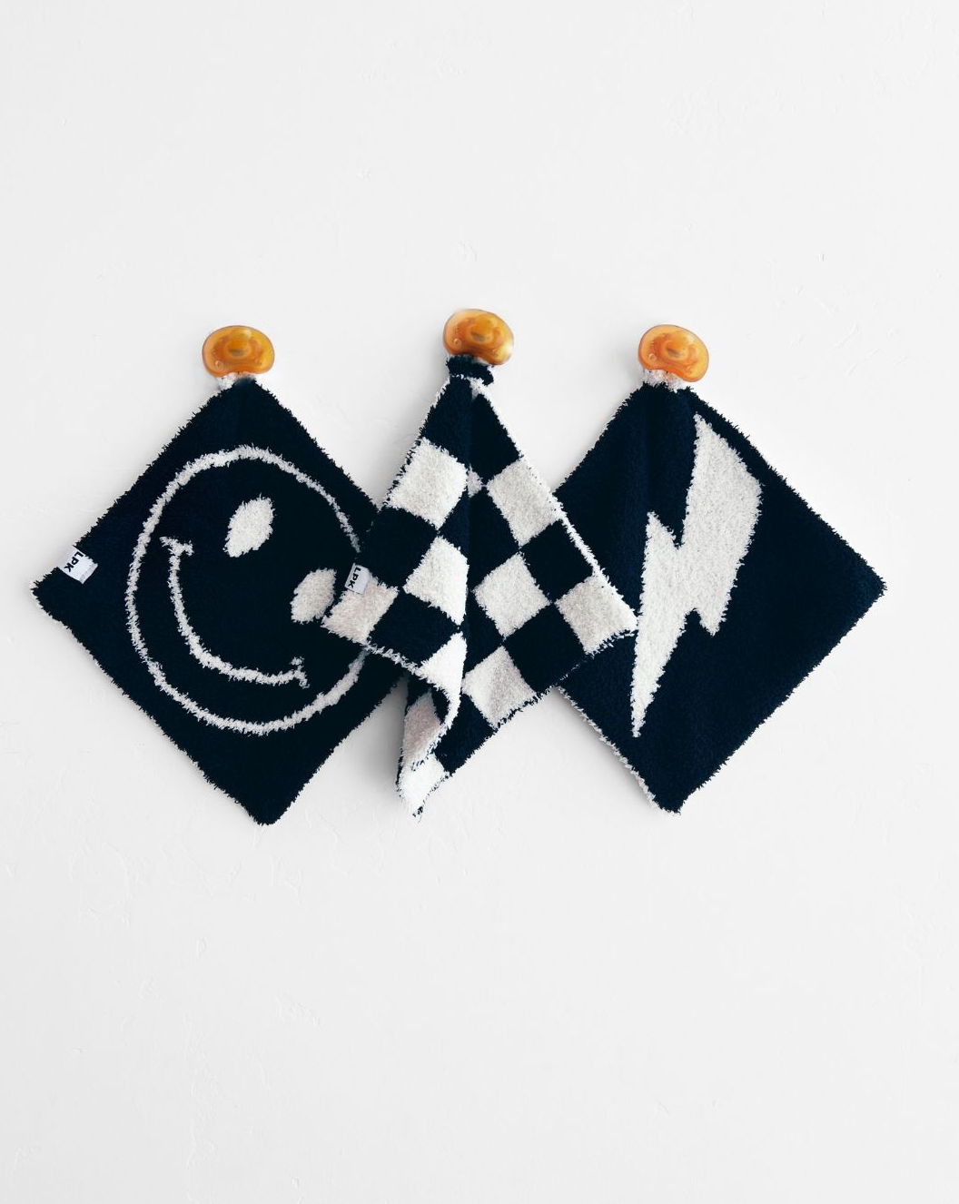 Introducing our new double-sided fuzzy pacifier loveys! Snuggle, soothe, snug & carry your little one with these dreamy soft, lightweight, and breathable loveys. Made from ultra-soft feather yarn, they're brushed for extra softness on both sides.